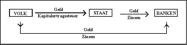 Sie alle mssen pltzlich einen Teil ihres hart erarbeiteten Geldes dem Staat abliefern; der Staat verwendet es seinerseits, um seine Zinsschuld bei den Banken zu begleichen. Und so finanziert und sichert ausgerechnet die Versteuerung des Zinsertrages die Ertrge aus Zinswirtschaft.