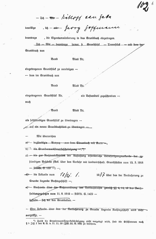 06 Amtl. Abschrift des Kaufvertrags zwischen D. Hake und dem Deutschen Reich (Reichspost) vom 2. Nov. 1939