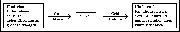 Das ist an sich ein sinnvolles und gesundes System. Reiche zahlen (prozentuell) mehr, Arme zahlen (prozentuell) weniger Steuern. Der Staat nimmt dieses Geld und erbringt damit Leistungen, verteilt es um: Er erbringt damit einerseits Leistungen, die allen ntzen (z. B. Polizei), andererseits gibt der Staat jenen Geld, die es besonders bentigen.