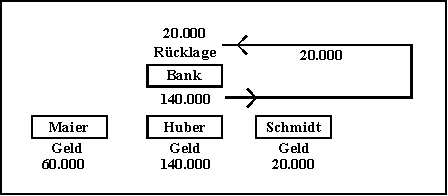 Konsequenz: Die Geldmenge der Volkswirtschaft wre von DM 360.000 auf DM 340.000 gesunken.