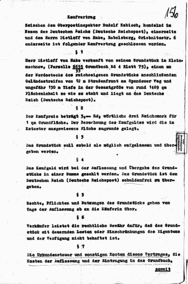 Verkauf an Reichspost S. 1
