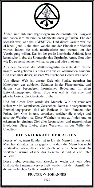 [1] Diese Schrift wird ab Juli 2004 mit ausführlichen Kommentierungen durch die Regierungskommission ‹Vrilia› der Principality of Sealand im Internet neu herausgegeben.